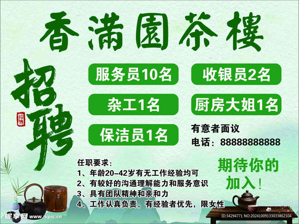 这家茶园小店正在举行一场特别的招聘活动!他们正在寻找热爱茶文化、喜欢与人交流的你,一起分享这份美好的体验,无论你是有经验的茶艺师,还是热爱茶文化的年轻人,这里都有适合你的岗位。