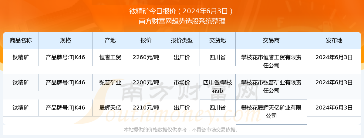 今日钛精矿最新报价概览