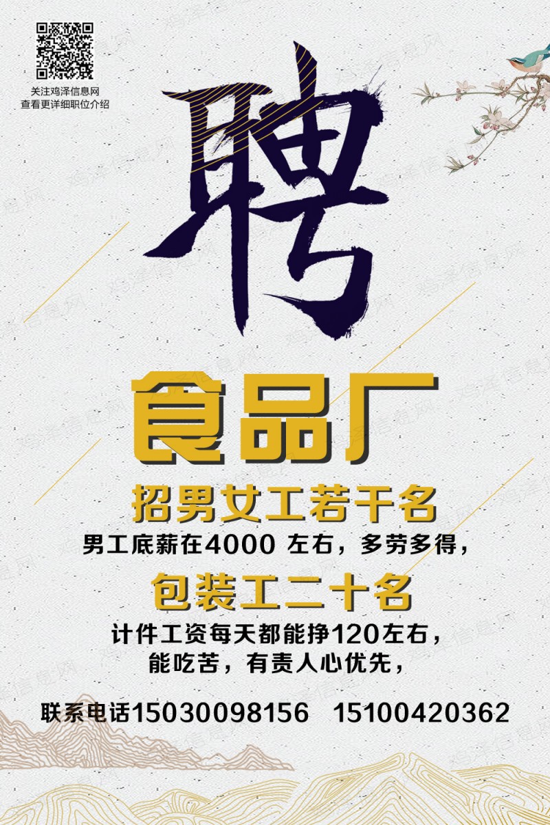 我们欢迎夫妻工加入食品厂的各个岗位,包括生产、质检、研发、销售等部门,具体的岗位要求如下: